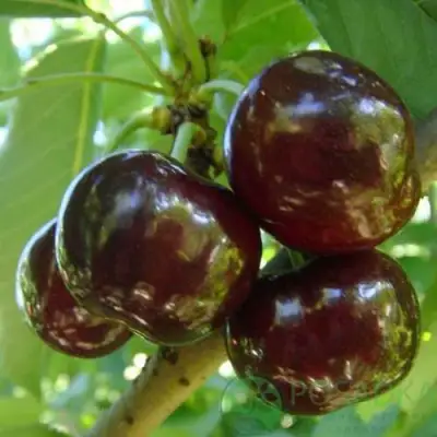 Плоды крупные, весом от 9 до 12 граммов! Они имеют сердцевидную форму и очень яркую красную окраску, которая притягивает взгляды. Толстая кожура предохраняет ягоды от растрескивания, а светло-красная мякоть обладает плотной, жесткой и сочной текстурой, что делает их идеальными для употребления в свежем виде и для переработки.