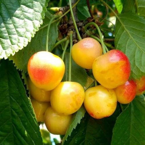 Мякоть черешни «Янтарная» нежная, светло-желтая, с высоким содержанием сока, который остается бесцветным. Вкус сладкий и сочный, что навсегда завоюет ваше сердце и порадует ваших близких. Срок потребления плодов – с конца июня до начала июля, что позволяет наслаждаться свежими фруктами в разгар лета.