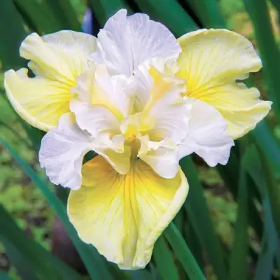 Период цветения Ирисов Йеллоу Тейл начинается в мае и длится до июня, лаская глаз большими (до 13 см в диаметре) цветками. Каждый из них поражает своей гофрированной текстурой и двухтоновым окрашиванием: верхние лепестки белоснежные, а нижние — нежно-лимонного и лимонно-желтого оттенков. Этот нежный и чарующий аромат порадует вас и ваших близких своей тонкостью.
