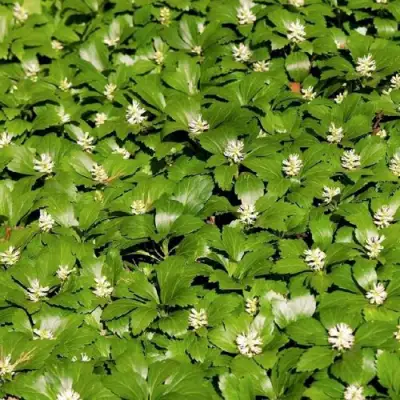 Мелкие соцветия на вершинах побегов, распускающиеся в мае, хоть и малозаметны, добавляют к общему ландшафтному дизайну нежные акценты, не отвлекая внимание от основной игры зелёных оттенков. Высота прямостоящих стеблей достигает 30-35 см, что делает пахизандру идеальным кандидатом для создания плотных зелёных полян даже в тени деревьев.