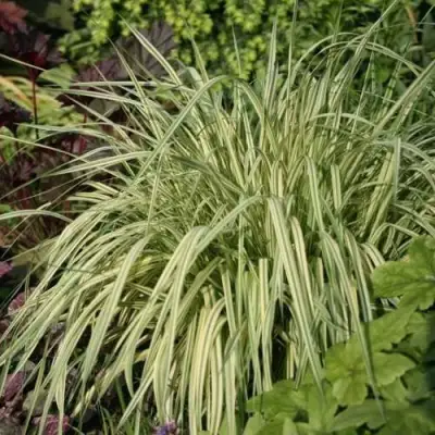 Молиния вариегата также подходит как для одиночных, так и для групповых посадок, что позволяет вам создать свои уникальные композиции. Саженцы прекрасно сочетаются с другими растениями, включая астру, барвинок, гелениум или живучку, что делает их универсальными для использования в различных стилях ландшафтного дизайна.