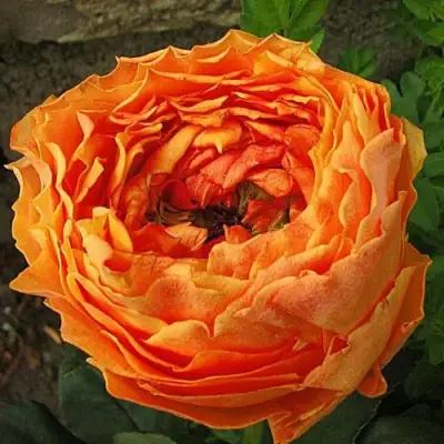 Окраска цветка Каралуна привлекает внимание своей оранжево-золотистой палитрой. Диаметр цветка составляет 11 см, а тип цветка полумахровый, с количеством лепестков от 8 до 20. Роза обладает легким ароматом.