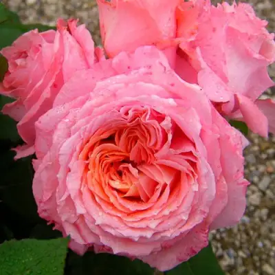 Цветки — главное достоинство сорта. Они густомахровые (до 60 лепестков), крупные — до 10 см в диаметре. Форма цветка — классическая чашевидная с переходом к розеточной. Окраска лепестков сложная: центр — насыщенно-абрикосовый, края — нежно-розовые с легкой персиковой вуалью. Цветение идёт волнами — с начала июня и до поздней осени, с минимальными паузами. В соцветиях обычно по 1–3 бутона. Аромат тонкий, тёплый, фруктово-цветочный, ощущается на близкой дистанции, не навязчивый.