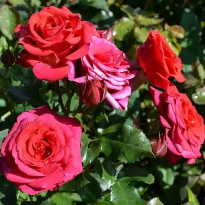 Цветы сорта "Мирабель" — это его главная гордость. Ярко-красный оттенок, который можно назвать основным, буквально пылает на солнце. Насыщенность цвета остается высокой независимо от погоды, создавая настоящий фейерверк в вашем саду. Диаметр цветка составляет 4-5 см, что делает его небольшим, но очень изящным элементом в общей композиции куста. Густомахровые лепестки расположены в соцветиях, по 3-5 цветков на одном стебле. Аромат этих роз слабый, но с приятными фруктовыми нотками, которые создают легкую атмосферу уюта и тепла.