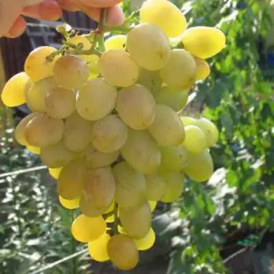 то надёжный ранний столовый виноград — грозди практически каждый год дозревают уже к концу августа. Ягоды крупные, желтовато-золотистые, плотные с тонкой кожицей. Вкус сладкий, с лёгкой кислинкой, очень приятный. Морозостойкость у сорта неплохая, но молодые кусты всё-таки укрываю на зиму.