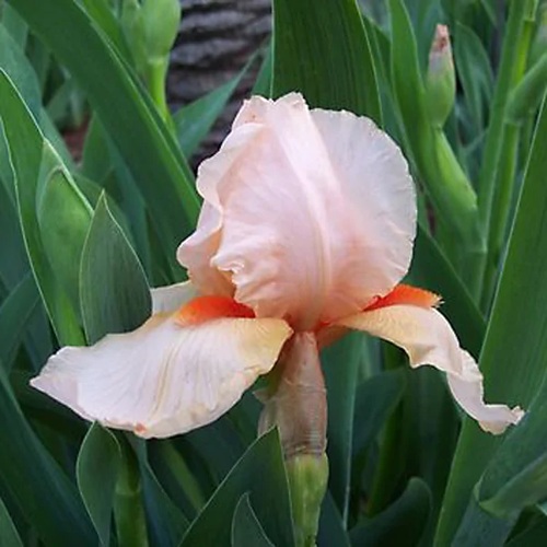 Бородатый ирис Пати Дресс — это не просто садовое украшение, а выразительный цветочный акцент, который играет на грани изящества и сдержанной яркости. Его лепестки окрашены в редкий абрикосово-лососевый тон, который переливается на солнце и подчёркивает глубину цвета фолов. Оттенки будто подсвечены изнутри, создавая эффект мягкой акварели. Этот сорт идеально подходит для тех, кто ценит чистую палитру, текстуру лепестков и устойчивость к климатическим капризам.